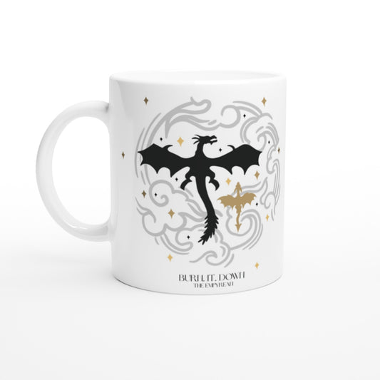 Onyx Storm Inspired Fourth Wing Mug – 'Burn It Down' Quote with Tairn and Andarna Design