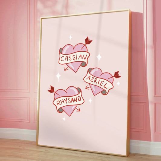 ACOTAR inspired Rhys, Cassian & Azriel Hearts Print