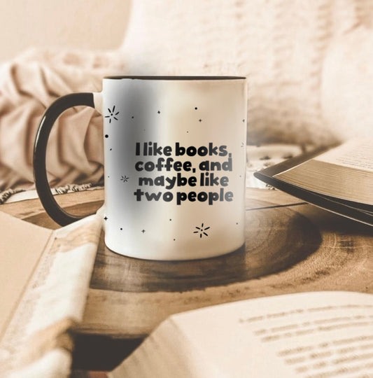Funny Book Lover Mug – 'I Like Books, Coffee and Maybe Like Two People' Ceramic Coffee Cup