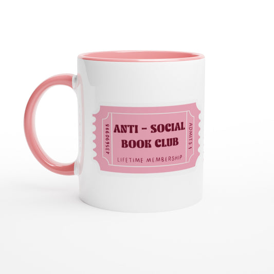 Cute Anti-Social Book Club Ticket Mug - Pink Ceramic 11oz Design