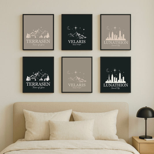 Fantasy Skyline Trio Print Set Black – ACOTAR | Throne of Glass | Crescent City