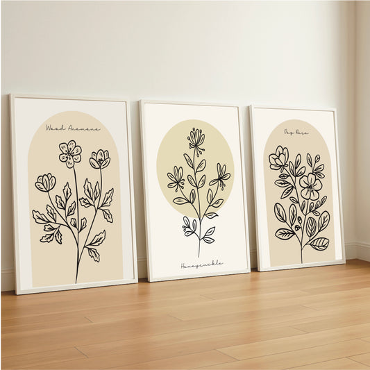 Floral Harmony – Set of 3 Minimal Line Art Prints