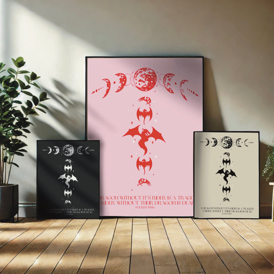 Step into the world of Fourth Wing with our bold, bookish wall art collection inspired by Rebecca Yarros’ bestselling fantasy series. Each print is designed for fans who want to showcase their fantasy obsession with fandom-forward, high-impact artwork—no cheesy clichés, just stunning, story-driven design. Whether you’re curating a moody reading nook, adding flair to your dorm, or gifting your dragon-loving bestie, our collection has the perfect print to match your vibe.