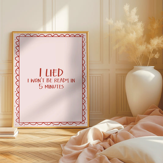 I Lied, I Won't Be Ready in 5 Mins - Cute Wall Print
