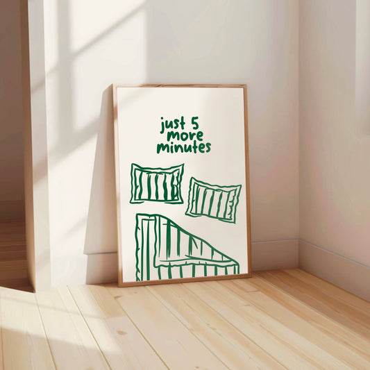 Just 5 More Minutes Bedroom Wall Print – Cozy Minimalist Art