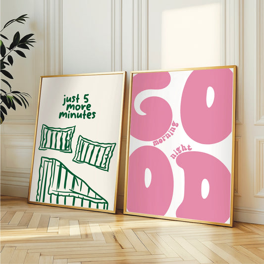 Good Morning Good Night Retro Wall Print – Pink or Black