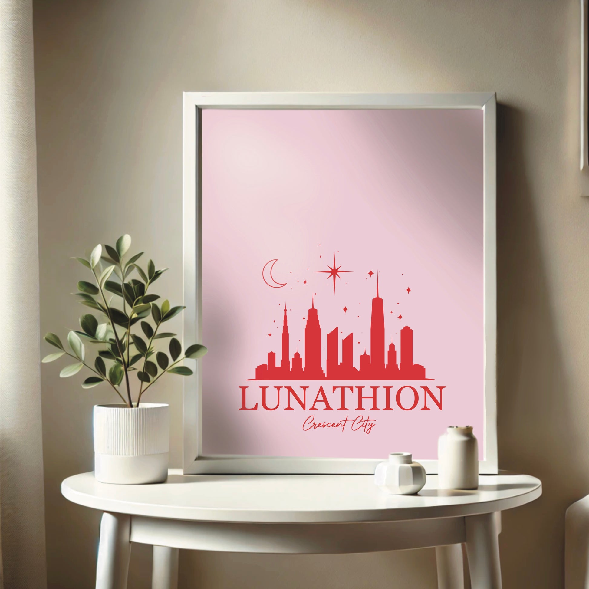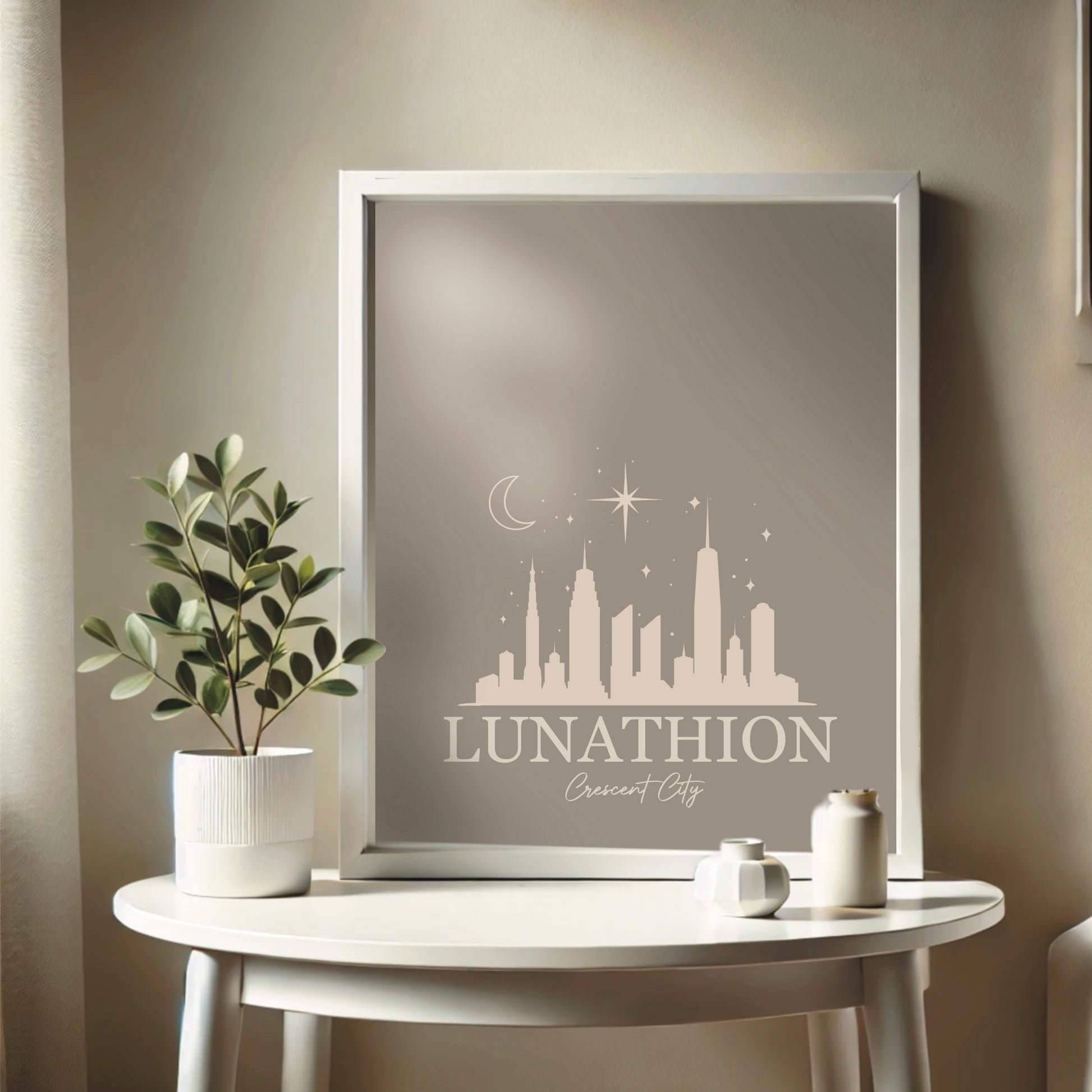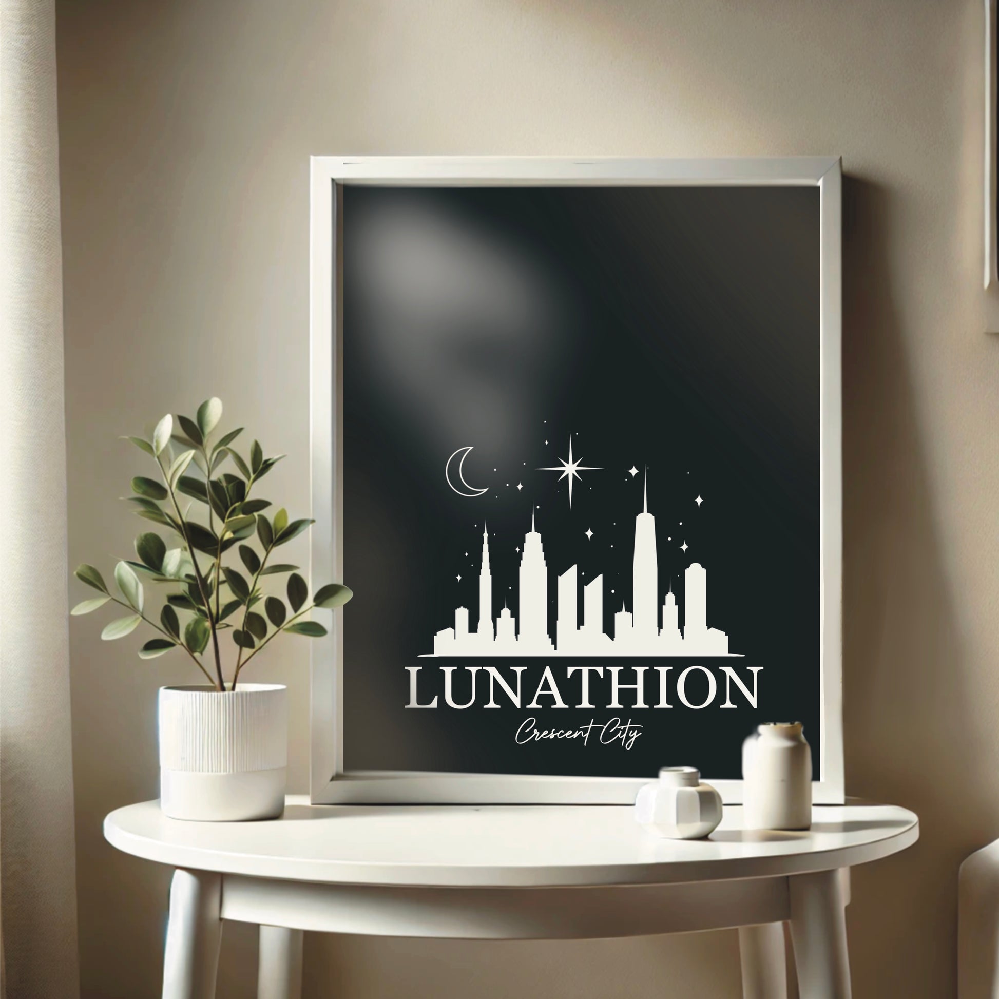 Bring the allure of Crescent City into your home with our Lunathion Wall Print, inspired by the vibrant cityscape of Sarah J. Maas’s enchanting universe. Perfect for fantasy book lovers, this stunning artwork captures the essence of Lunathion with modern colours and intricate details, printed on premium-quality paper.